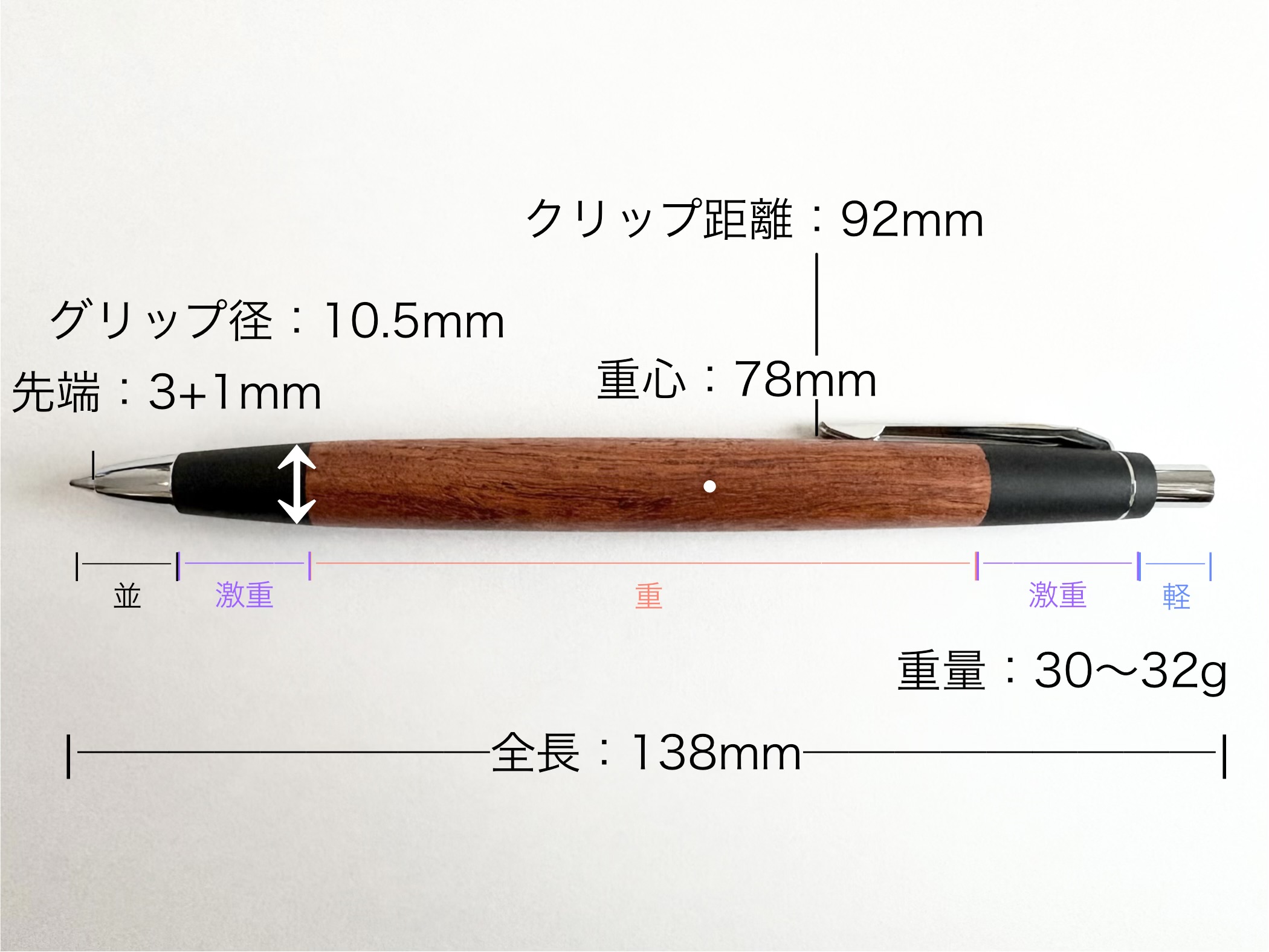 | 全長 | 138mm | グリップ径 | 10.5mm |