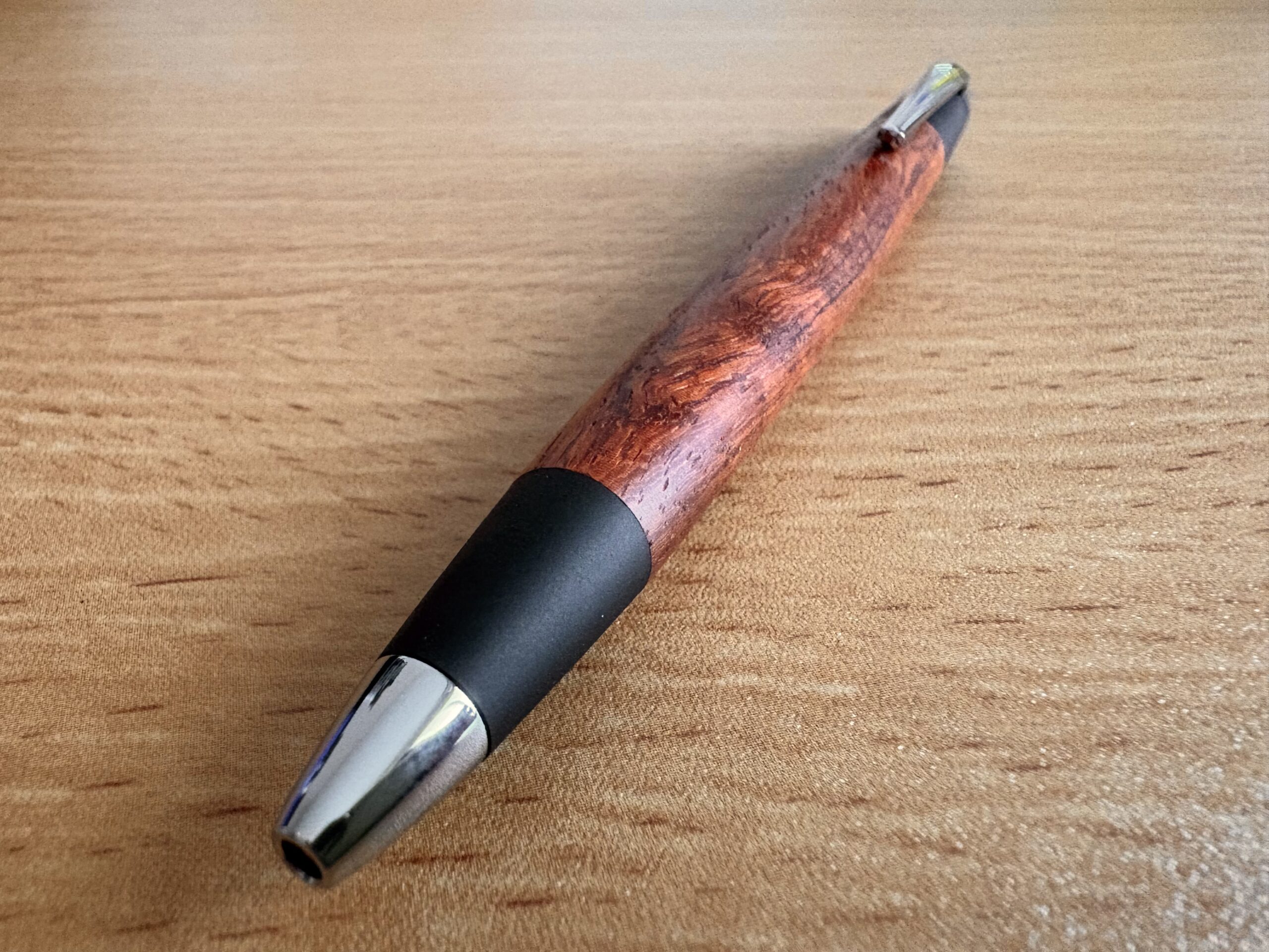 もちろん内部や両端の真鍮パーツは他と変わらず存在し、木も綺麗に加工されているため、持った時のがっしり感は他の野原工芸のペンと遜色ありませんが、コツコツ感を求めて購入するとやや残念に思ってしまうかも知れません。