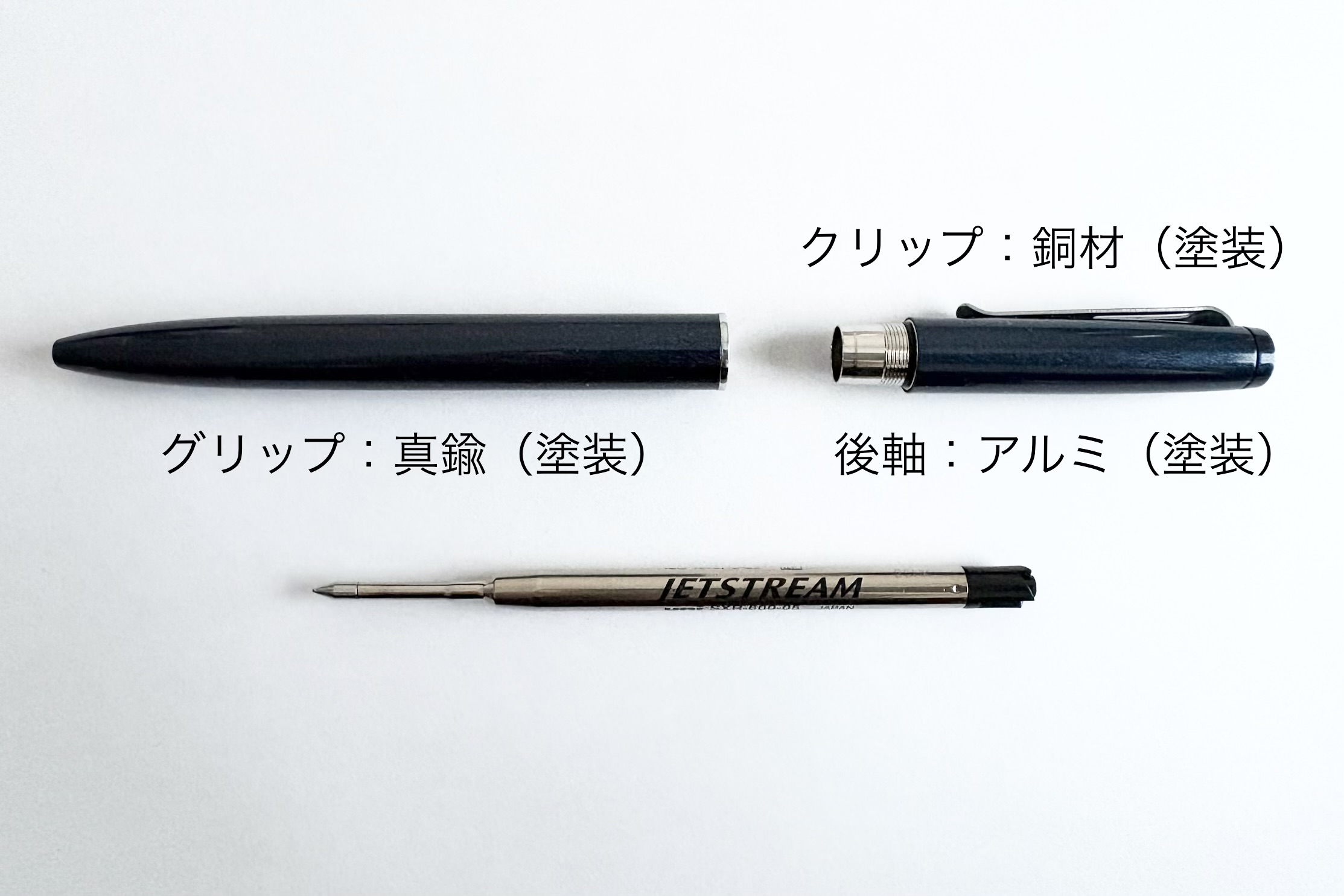 | 素材 | グリップ:真鍮(塗装) 後軸:アルミ(塗装) クリップ:銅材(塗装) |