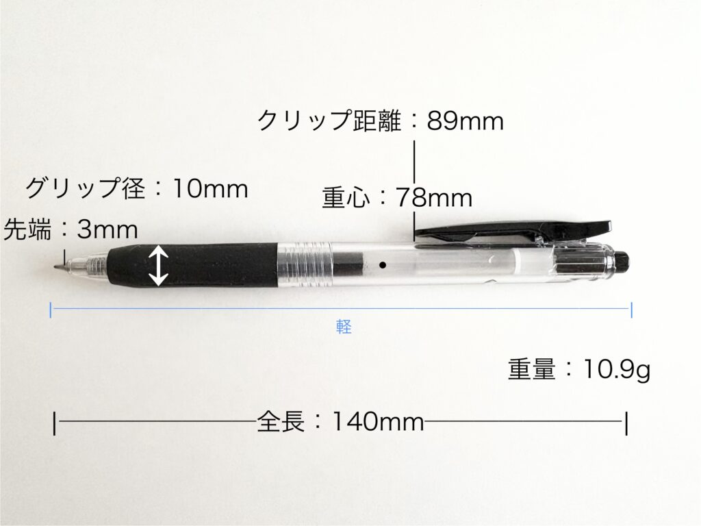 書きやすい部類だと思います。重心は78mmと相当高いですが、重量は10.9gと軽く、重い素材も使われていないため取り回しやすさ、いわゆる慣性モーメントを考えると重心位置はそれほど問題にはならないでしょう。