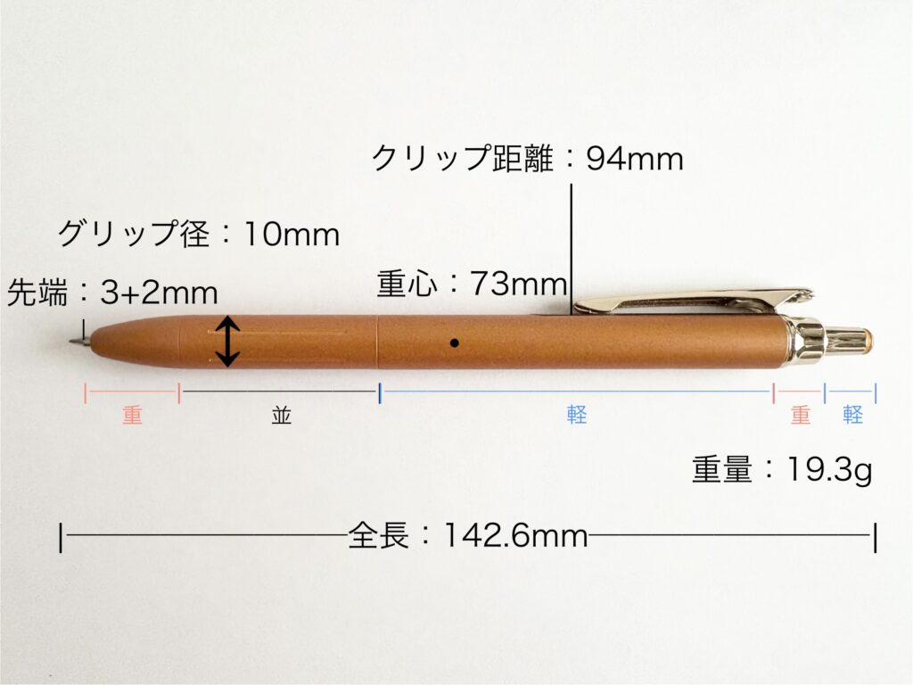 ではペン全体で見るとどうなのかという話ですが、このペンは重心こそ高いですが重量の配分・バランスは考えられていますので、書きやすい方だと思います。