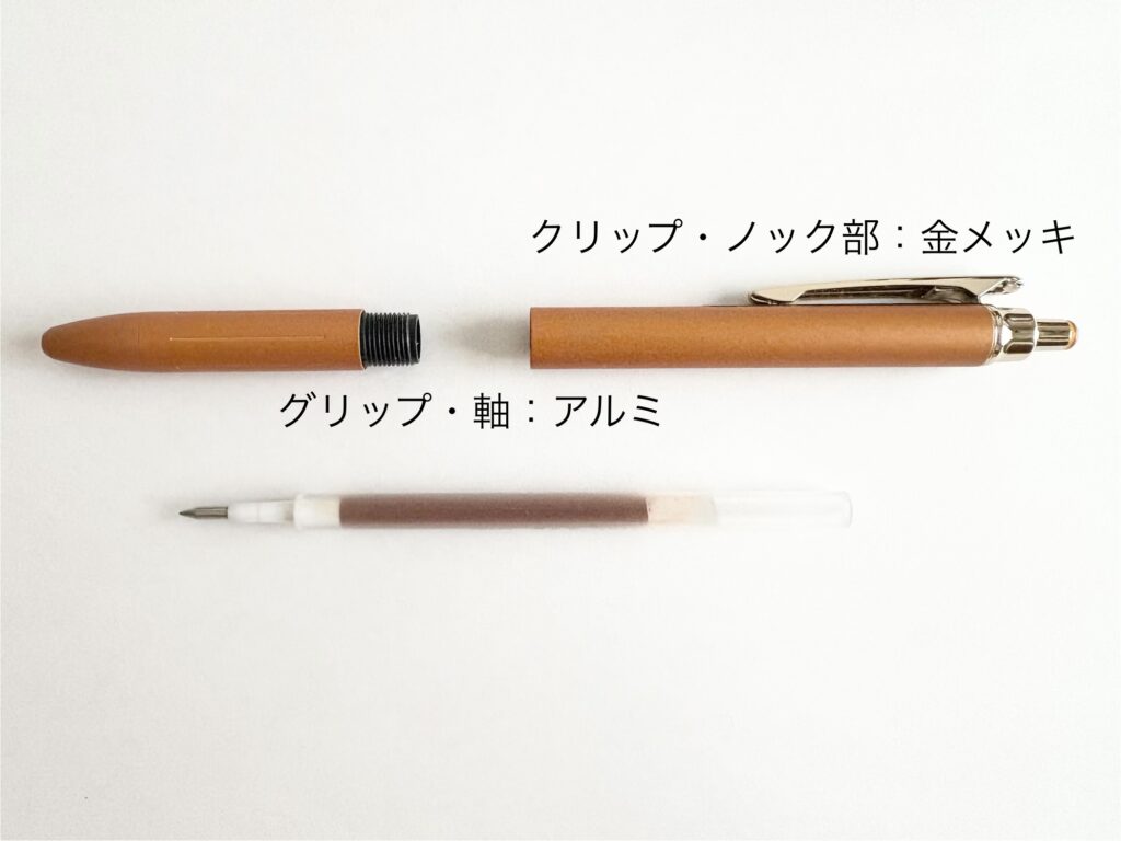 金属部分が多いわけではありませんが、手に触れやすい部分と先端は金属製ですのでそこそこ良い書き味になると思います。